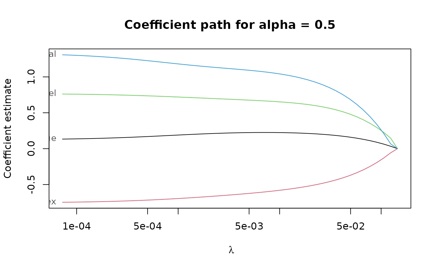 #> 4 out of 4 predictors have non-zero coefficients: