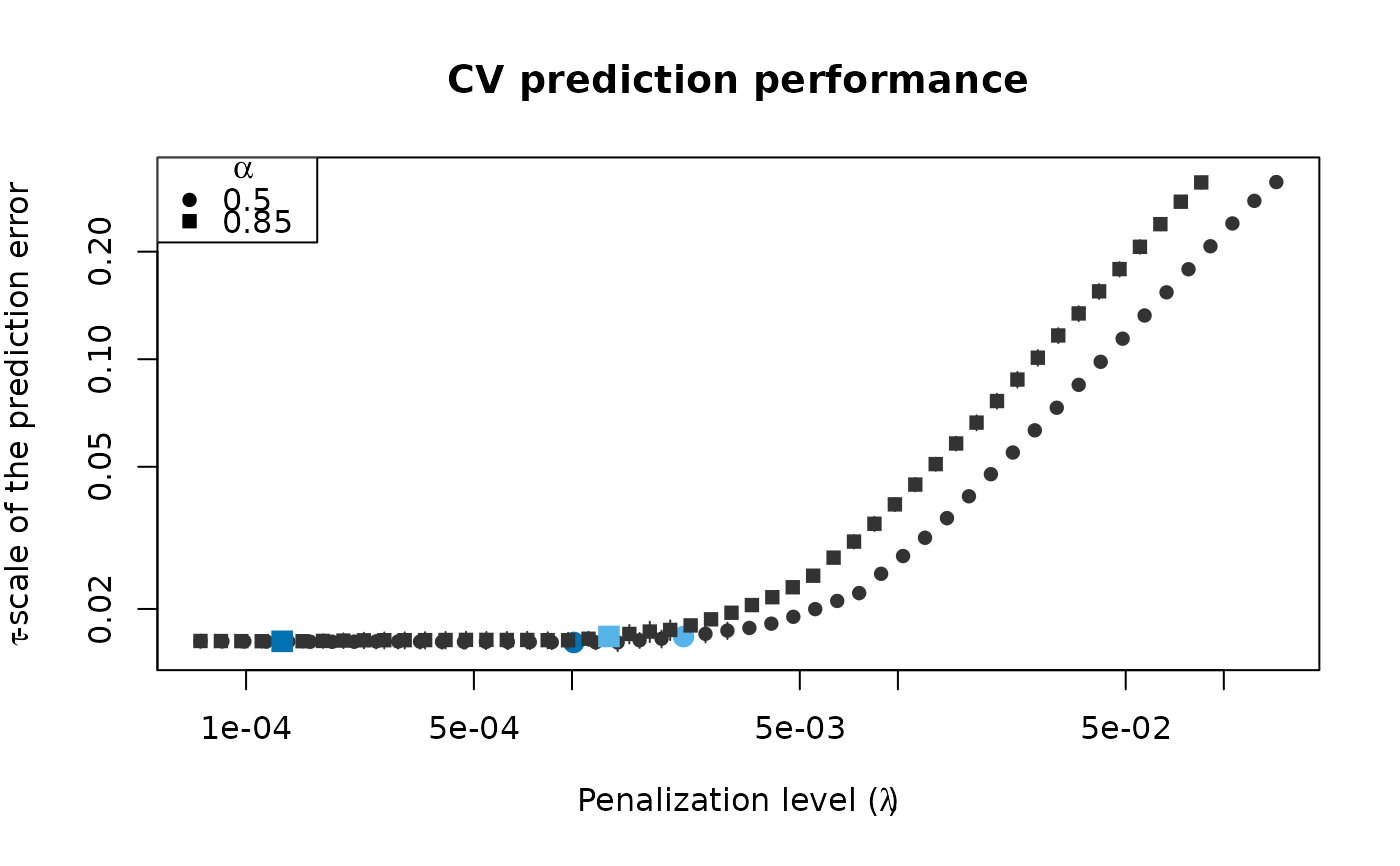 # ... or at the penalization level with prediction error